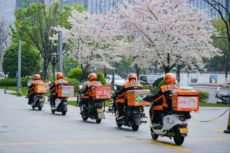 3月30日上昼,杭州余杭区正元聪惠大厦前,一支贴满寂寥症小画家们画作的骑士车队缓缓驶出。这些画作色调明丽、笔触纯碎,来自永远悉力于寂寥症艺术疗愈的公益组织“一万个太阳”。这几天,这些画作跟着骑士们的穿梭,出现时八座城市的三街六巷、商圈楼宇和社区驿站。