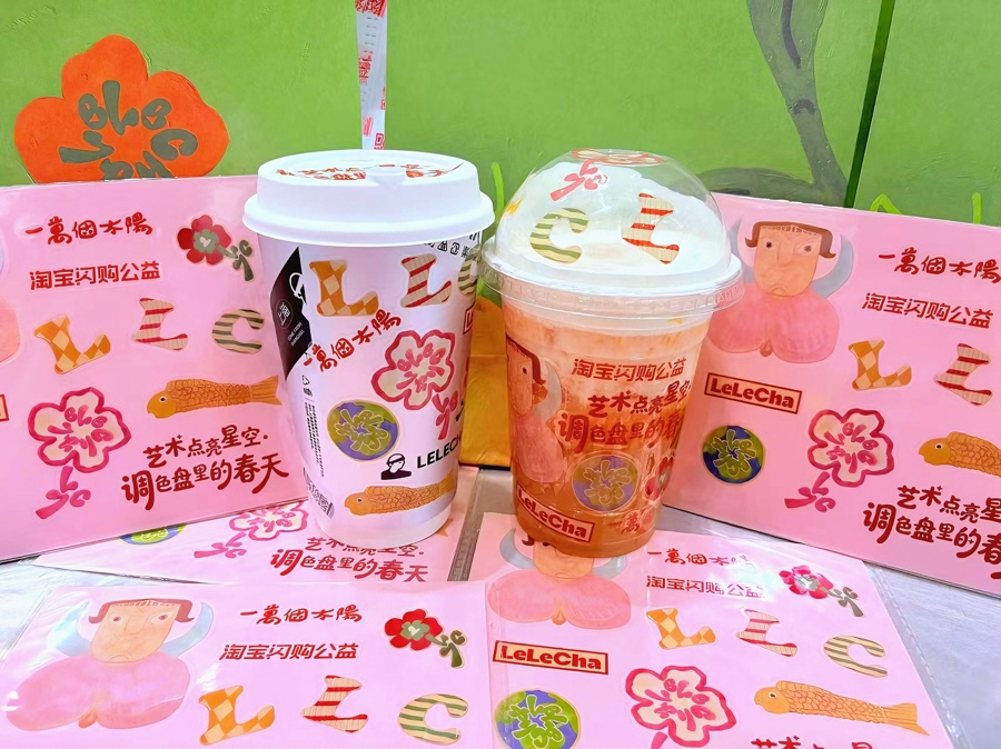 本年的画作不再只是停留在骑士餐箱上。淘宝闪购平台的爱心品牌正新鸡排、霸王茶姬、益禾堂、孙北北面包、乐乐茶积极参与,将寂寥症青少年的画作印制在杯套、外卖包装袋、贴纸、雪柜贴等独揽居品上,通过它们的门店向更多东谈主展示。消耗者在点一杯奶茶、买一份小食的平日消耗中,便能偶遇这些来自“星星的孩子”的作品。