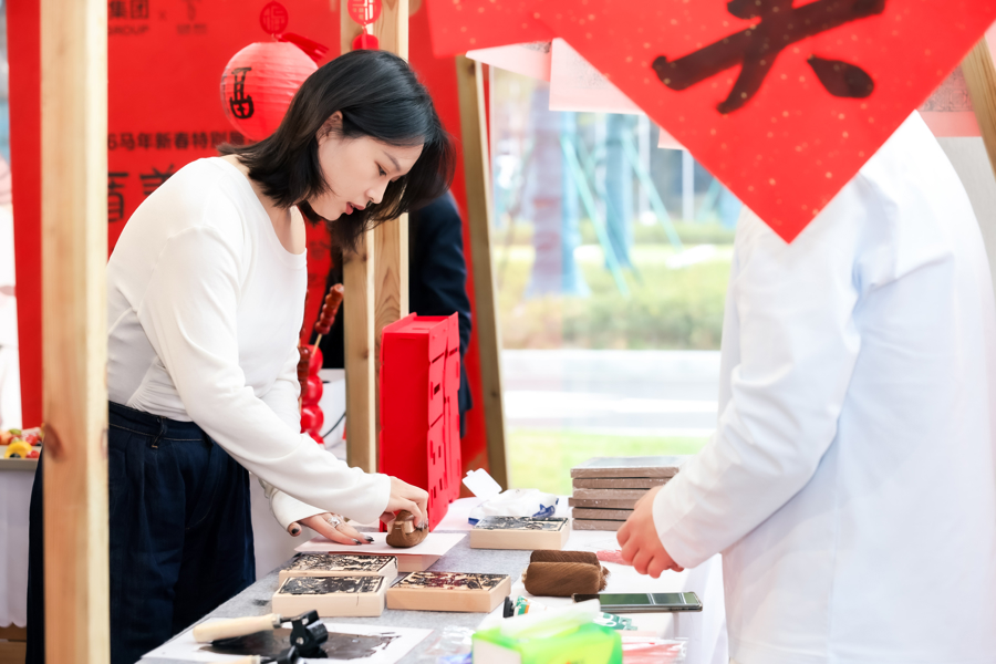 配合展览,现场同步开展新春游园会与年货节活动。观众可亲身体验甲马版画拓印、书写春联、抽取福签、品尝传统小吃,并参与各类互动打卡。来自大理的白族吉祥语“样样好”也被设计为艺术装置,吸引观众留下新年心愿,寄托美好祝福。记者了解到,本次年货节活动将持续至2月13日,推出多款限定礼盒与优惠活动,通过“文化+消费”融合模式,丰富市民新春文化生活,促进区域文旅商体联动。
