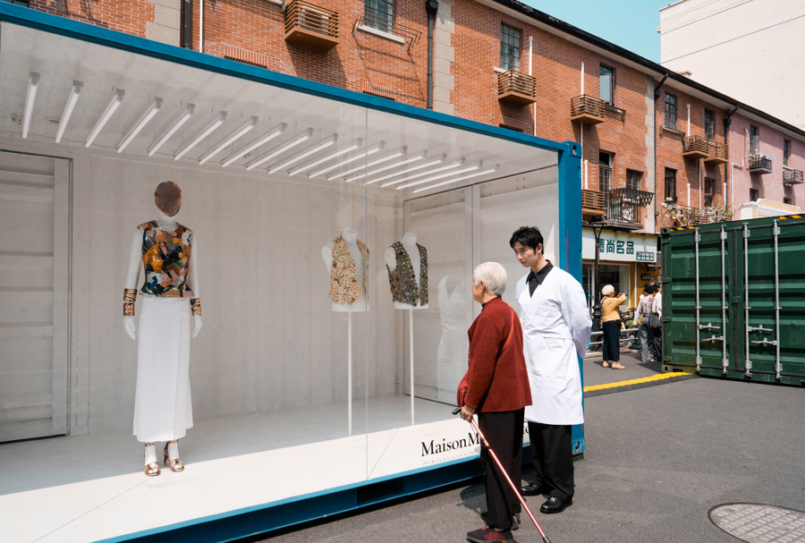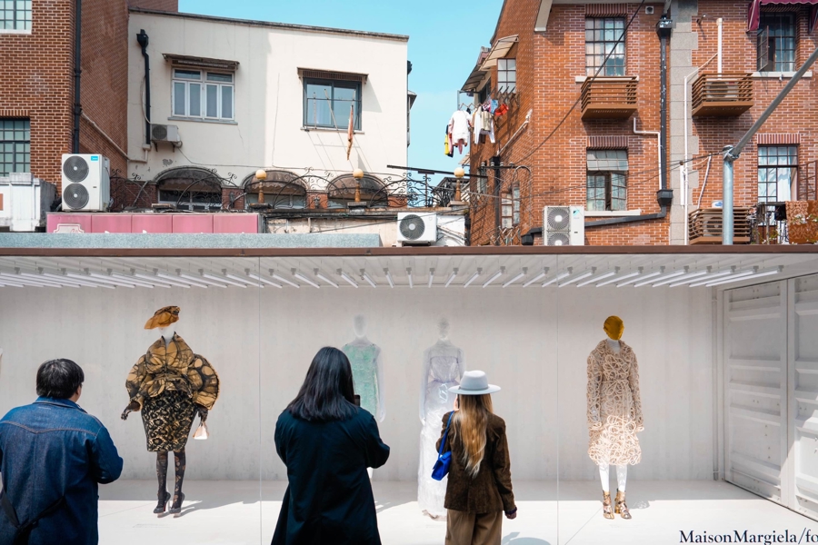 新民晚报记者在现场看到,樱花树下,纯粹的集装箱式展柜杂沓排布于街头,1989年至2025年间的58套Artisanal高等定制造型荟萃亮相。展品按主题系统永别,全面彰显品牌一以贯之的高定探索理念,包括升级再造、解构目的、错视艺术、原型重塑、原始材质应用以及平日物品的艺术转机等。