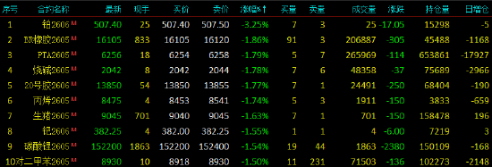 2026年4月13日,早盘开盘,国内期货主力合约涨跌互现。SC原油、集运欧线涨超5%,不锈钢(SS)涨超2%,沪银、纯碱、海外铜、沪铜涨超1%,玻璃涨近1%;跌幅方面,铂跌超3%,20号胶跌超2%,PTA、烧碱、丙烯、乙二醇(EG)、塑料、橡胶、棕榈油跌超1%。