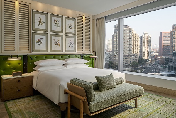 为了打造联接历史胡衕与未来天空线的“垂直上海邻里”,栈房以“引景入室”为中枢打算理念,将上海的城市肌理与生计气味融入每一处空间。栈房领有267间客(套)房,走廊打算勾画出上海胡衕瑰丽性的梧桐树剪影,每间客房房门独树一帜,强化居住氛围;室内鉴戒复式住宅步地,孤立衣橱邻接卫浴空间,立体瓷砖墙面营造出如家般的温馨,超大落地窗则将石库门老建筑与摩天楼交相衬映的沪上私有景不雅尽收眼底。此外,BYREDO ELEVENTH HOUR定制洗护用品、土产货匠东谈主手工打造的居品等细节,更是让客东谈主千里浸式踏进于确切的上海生计画卷。